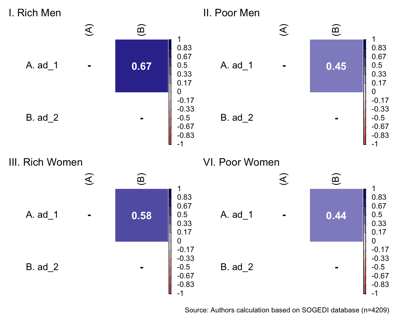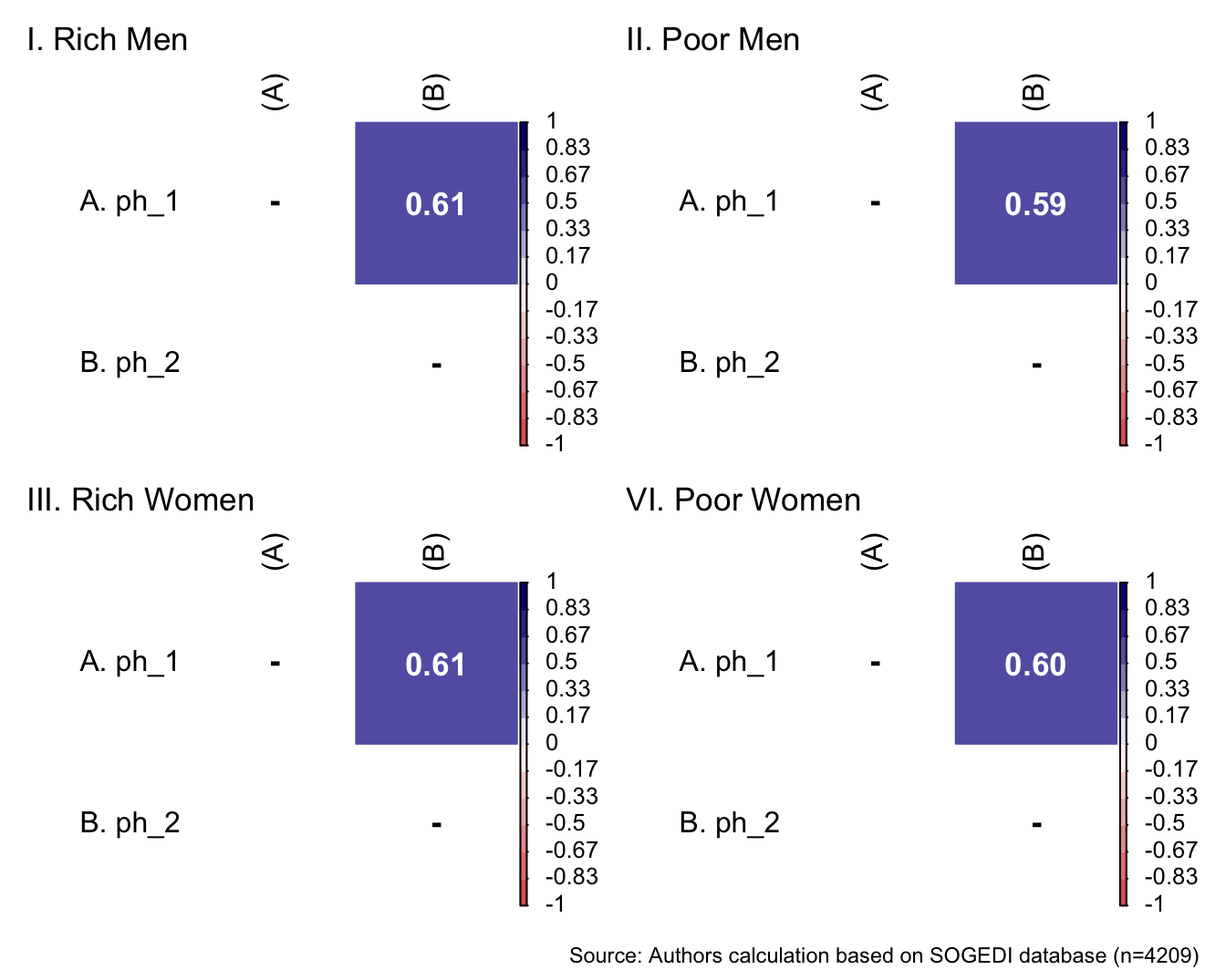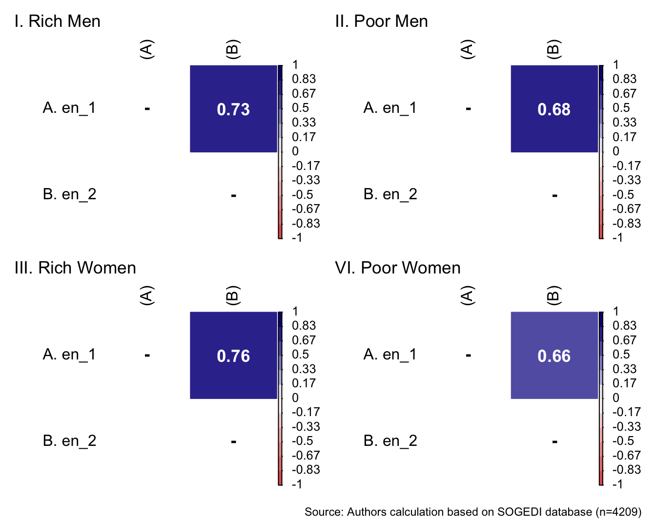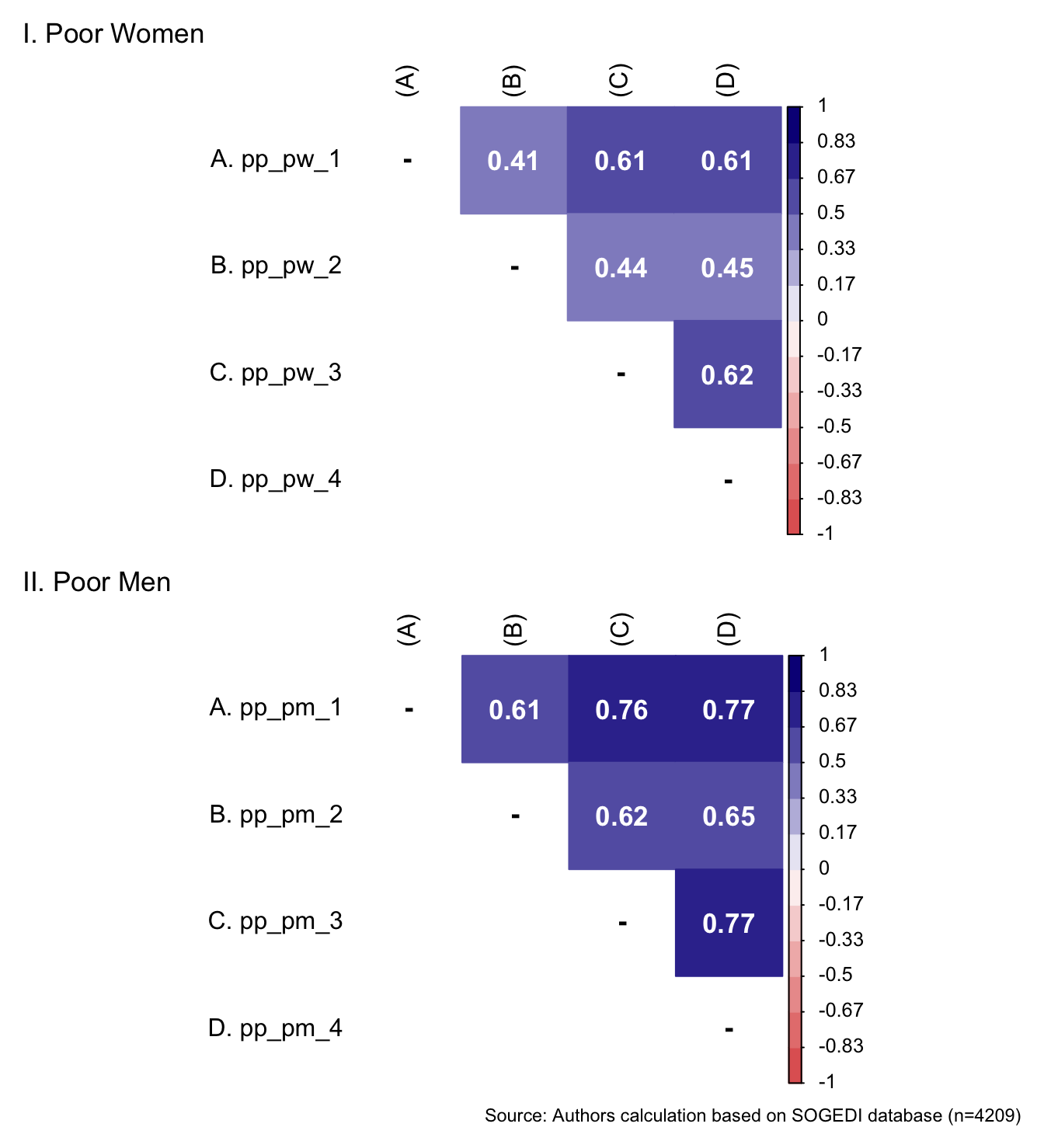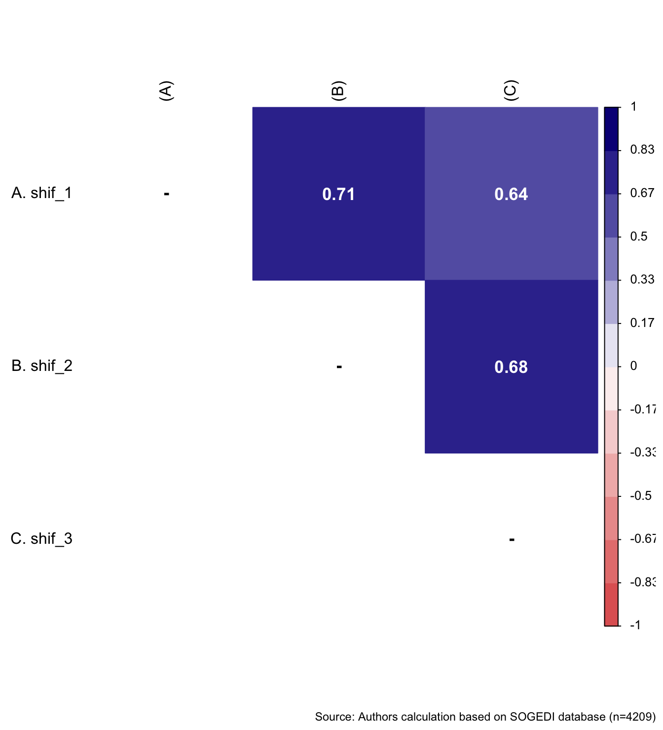 A descriptive analysis is conducted for all survey items, covering both single variables and those that form part of composite indicators or latent factors. For the latter, correlation matrices and reliability indices (Cronbach’s alpha) are also computed. In several instances, we evaluate factorial structures on the basis of the original sources and the publications from which the items were adapted, while remaining open to alternative configurations during the data exploration phase.