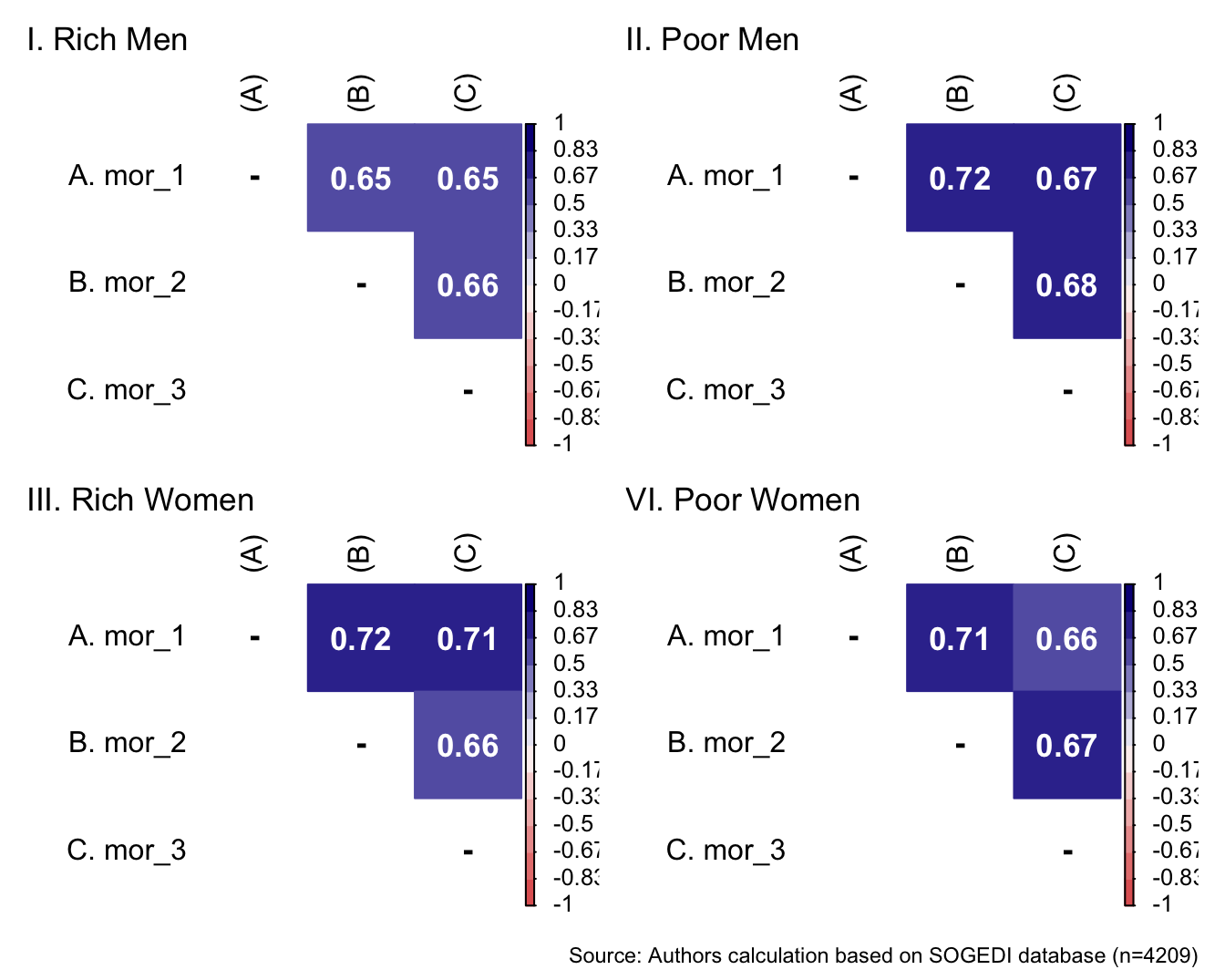Although these criteria provide a robust framework for determining acceptable model fit (Brown, 2015; Kline, 2023), not all proposed variables in this dataset satisfy these standards. In instances where the factorial structure or reliability is inadequate, we recommend that each researcher exercise discretion in handling the data—either by adjusting the measurement strategy, dropping problematic items, or proceeding with caution in empirical analyses. By framing these guidelines as suggestions rather than prescriptive mandates, researchers can maintain analytical flexibility and ensure that their chosen approach is grounded in both theoretical considerations and empirical evidence.